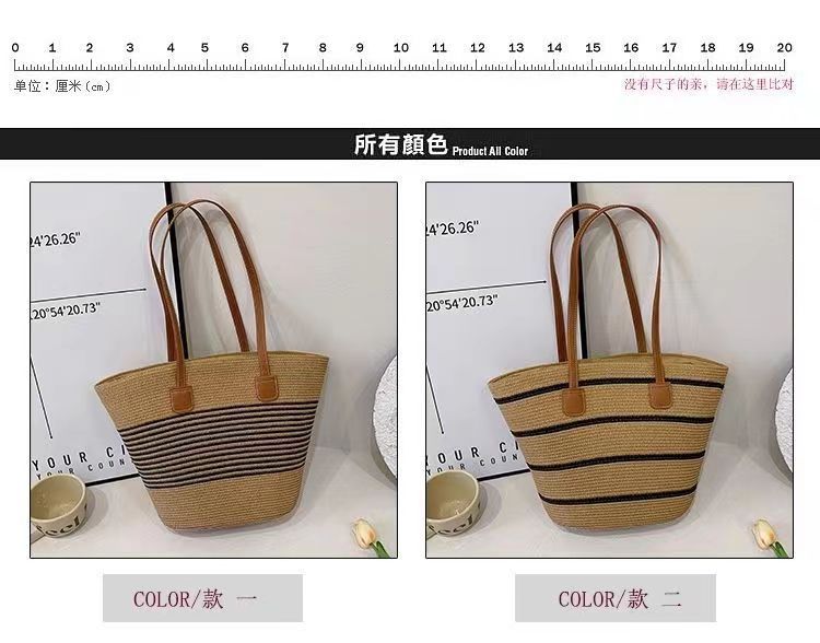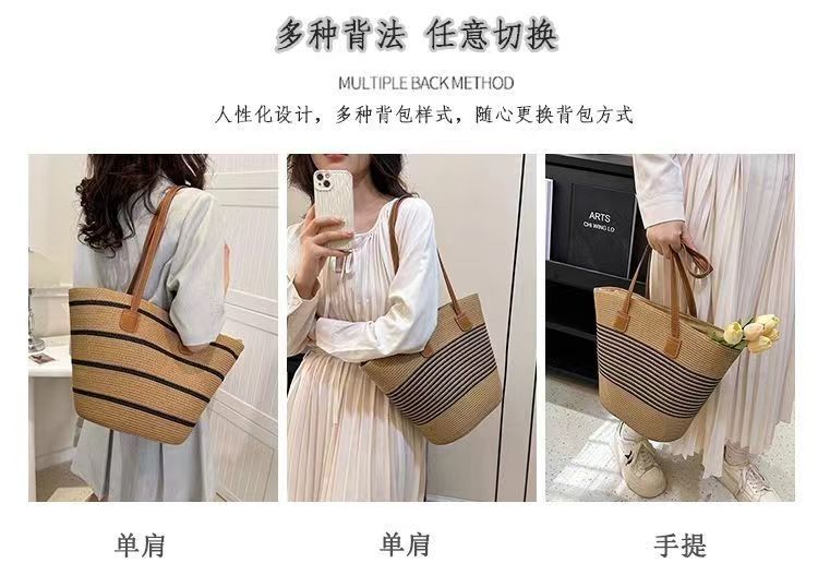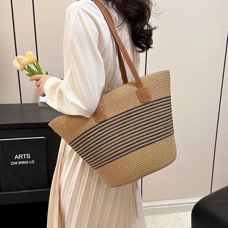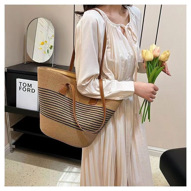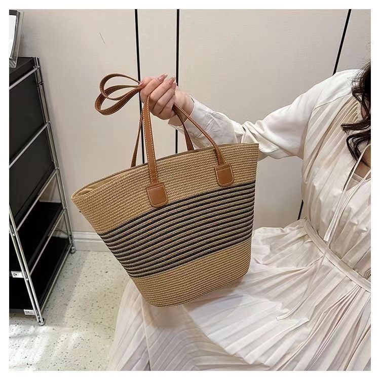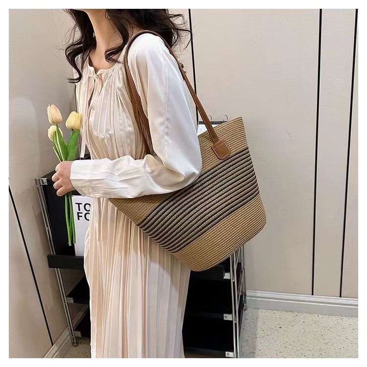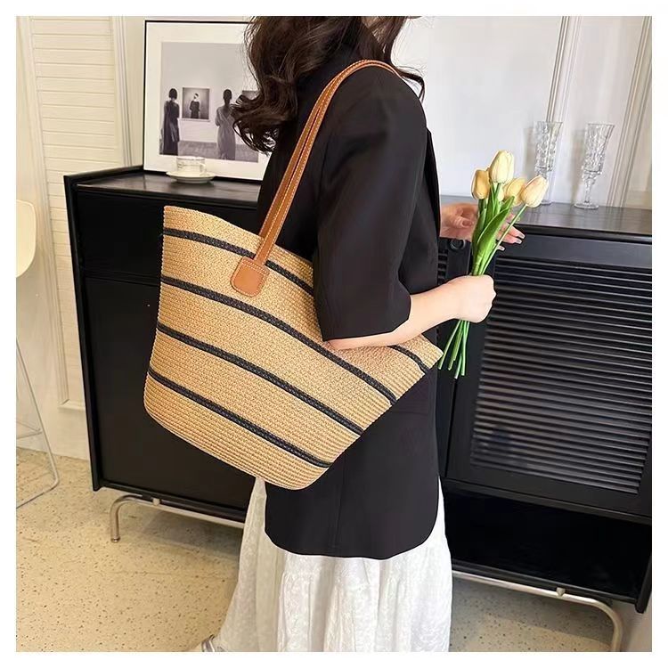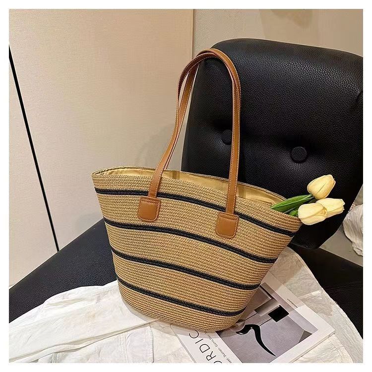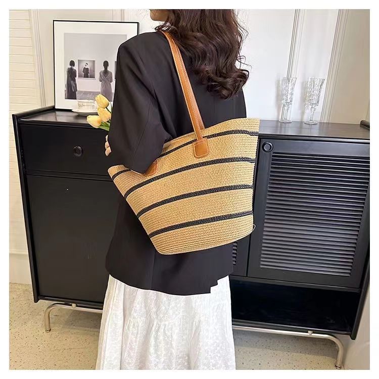 Autumn New Striped Straw Bag French Large Capacity Tote Bag Temperament Women's Bag Hand Bill Shoulder Bag