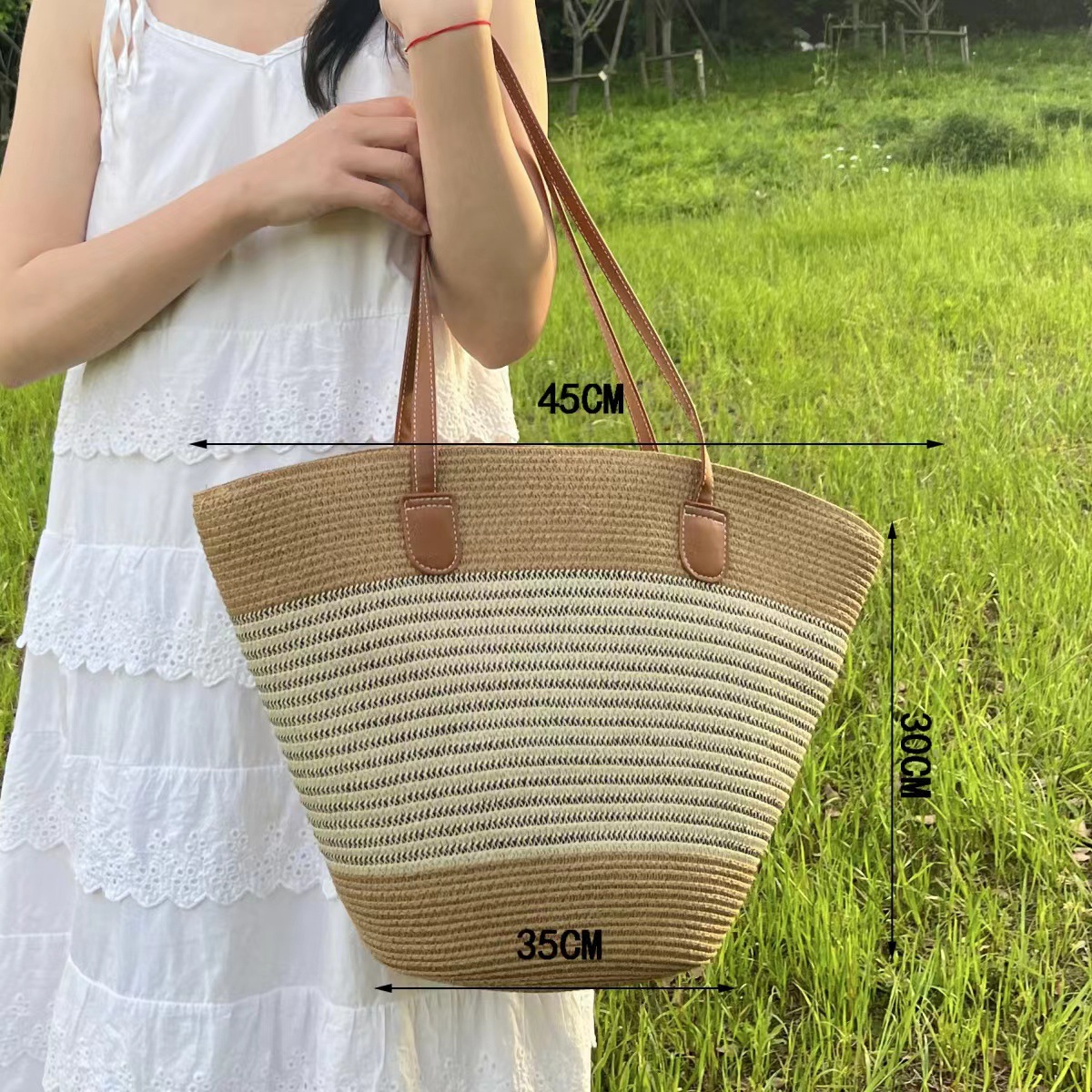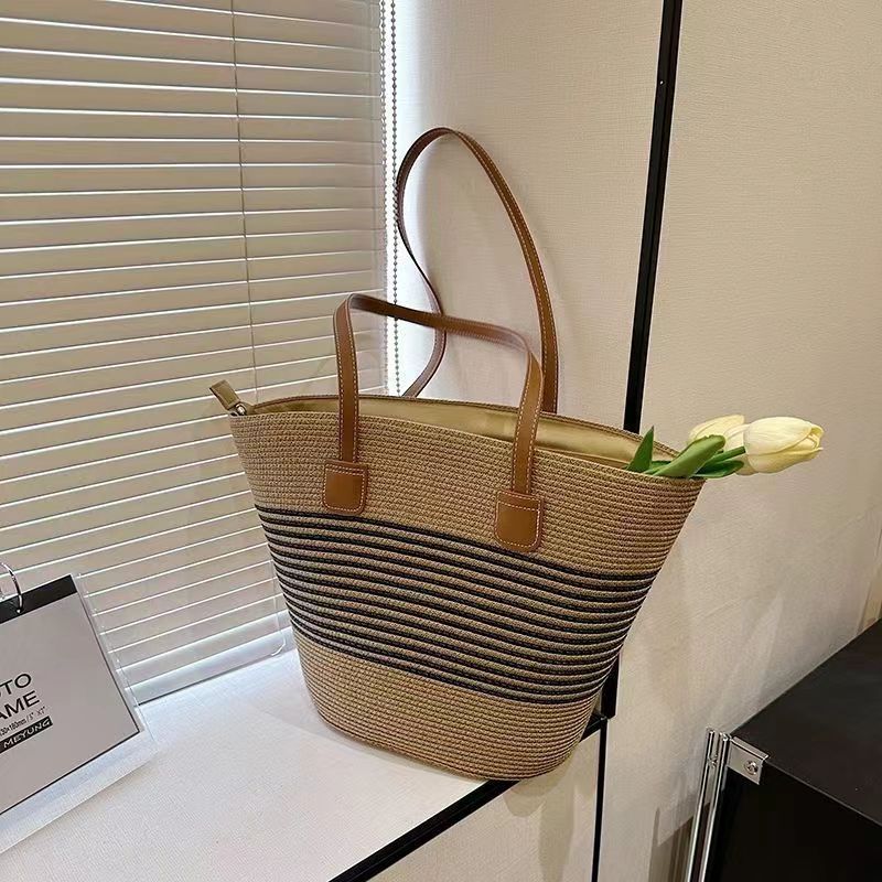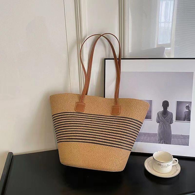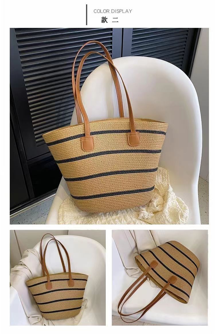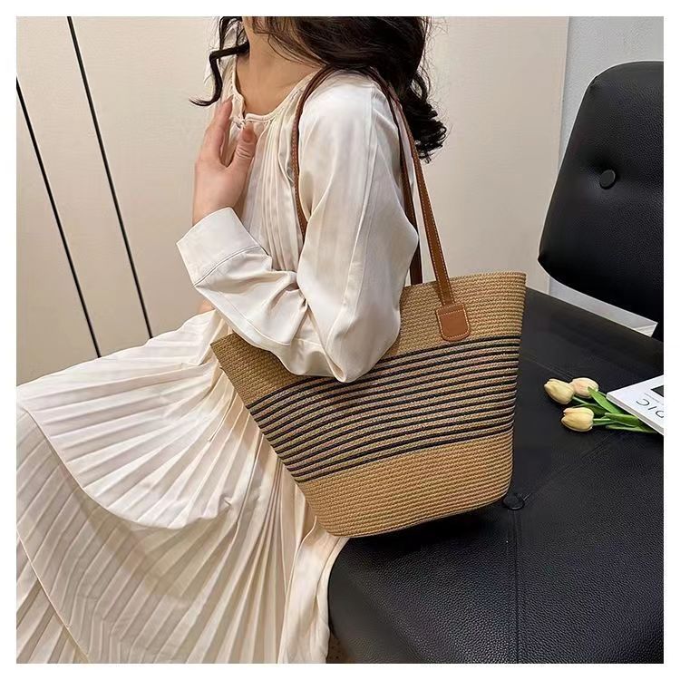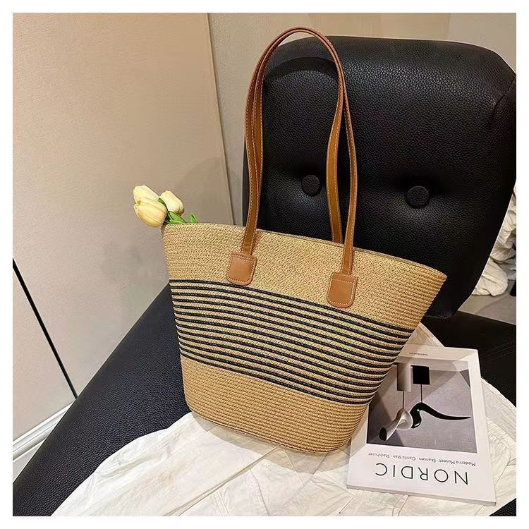 Autumn New Striped Straw Bag French Large Capacity Tote Bag Temperament Women's Bag Hand Bill Shoulder Bag